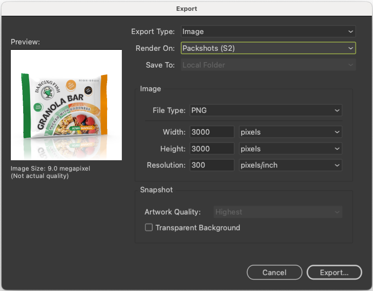 - Offload the rendering of ray-traced images to S2’s Automated Packshots. Previously known as rendering on Esko Cloud, we also improved the user experience by sharing credentials between all Esko S2 services.