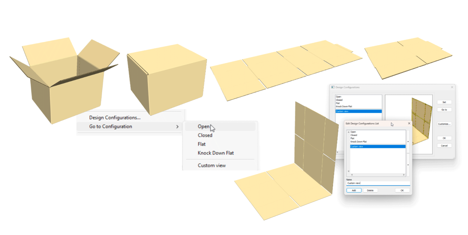- Dynamic Visualization: Define multiple 3D configurations—such as open, closed, flat, or folded—and switch between them instantly with a right click.