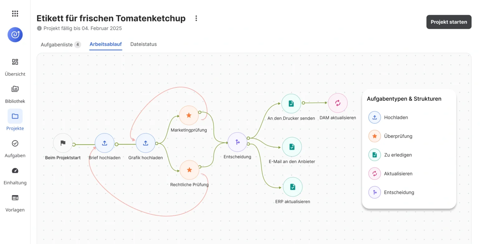 Erstellen Sie sowohl serielle als auch parallele Workflows, um den gesamten Verpackungsprozess von der Artworks-Erstellung bis zur finalen Freigabe zu steuern.