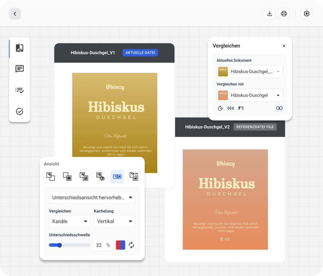 Artwork mit höchster Präzision prüfen und vergleichen – dank fortschrittlicher Proofing-Tools im Viewer.