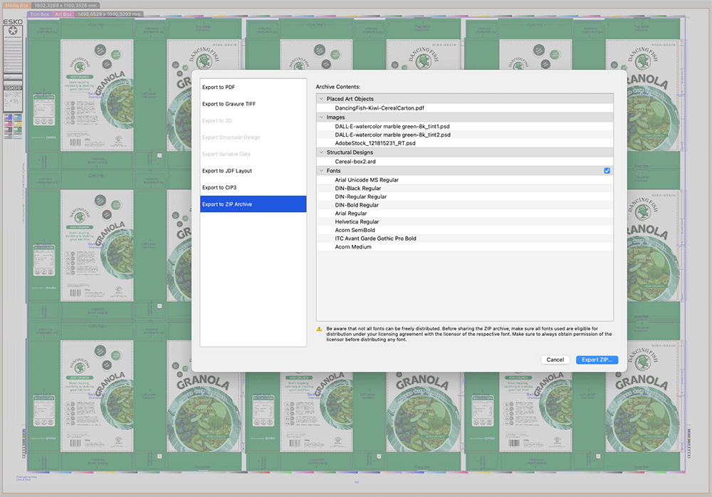 - The new Archive/Export ZIP functionality in ArtPro+ allows users to package entire projects—including all linked assets, one-ups, images, and fonts—into a single, easily shareable file.