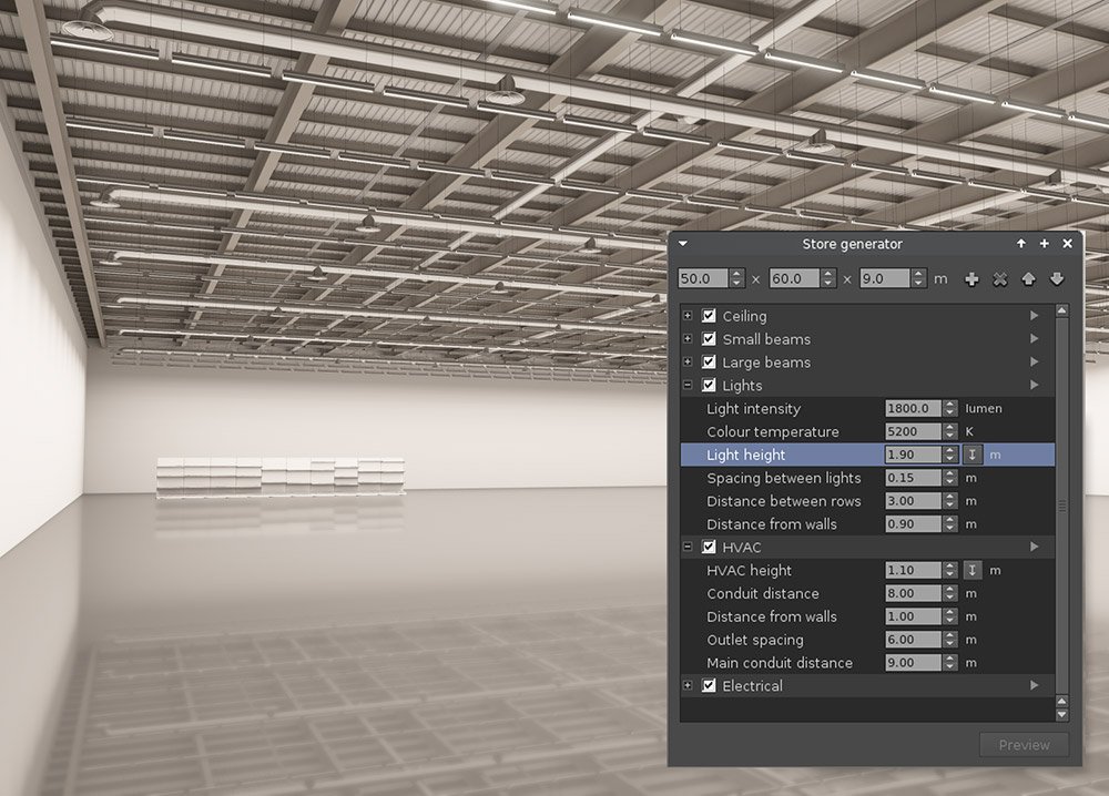 • Set the size and floor space, customize lighting and the look and feel. They’re also resizable: once generated, change your store on the fly, even within an existing project.