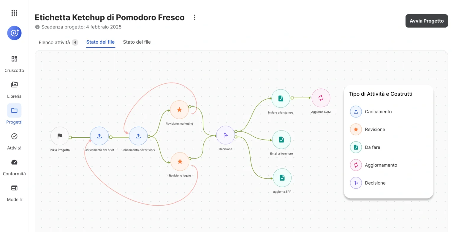 Crea flussi di lavoro sia in serie che in parallelo per gestire l’intero processo di packaging, dalla consegna dell’artwork fino all’approvazione finale.